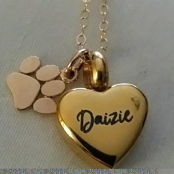 I found a place on Etsy that makes remembrance jewelry and had a heart engraved with her name and inside the urn part I have her fur and Irish Spring slivers of soap. Why that soap? she always had that soap by her crate or near by. I think because that is the soap mostly used in the house.Who knows? She would always do silly things like that.